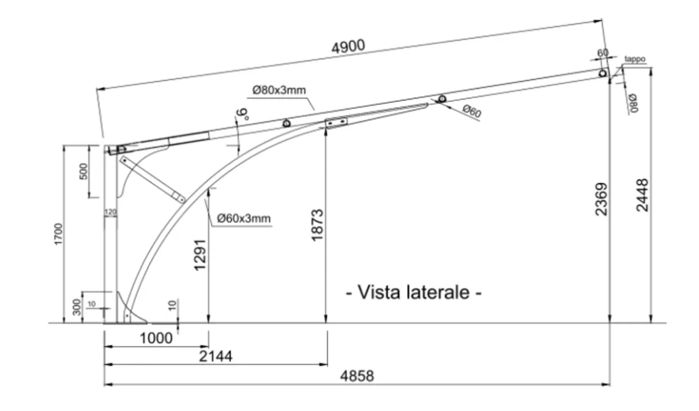 Il nostro ufficio tecnico è a disposizione per eventuali modifiche dimensionali sulle pensiline per auto TS10