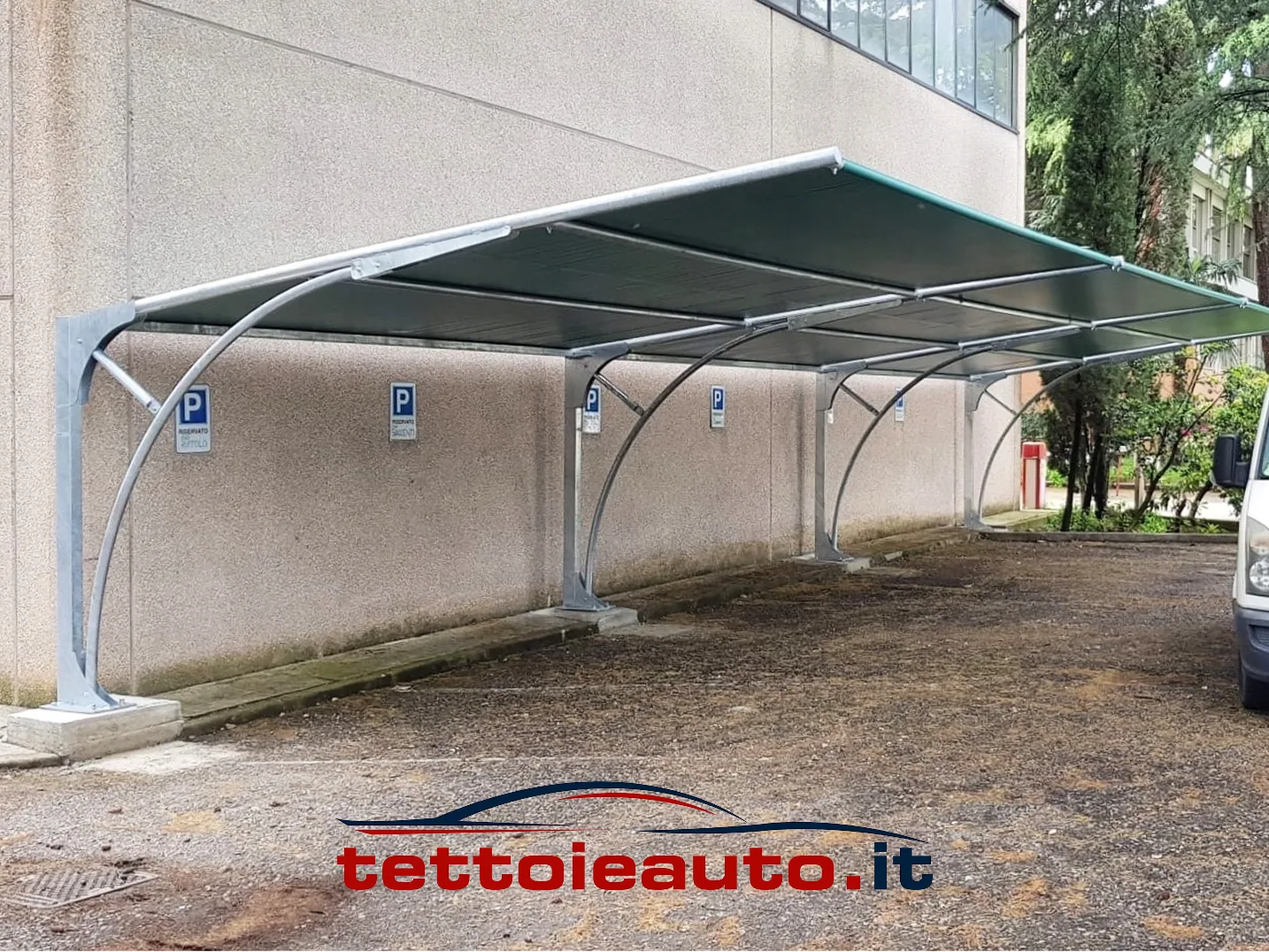 Con la possibilità di modificare le altezze anteriori e posteriori e i canali di gronda integrati nella struttura perimetrale (con scarico acqua dai piantoni) queste tettoie per auto sono molto apprezzate per la versatilità e possono essere installate in contesti diversi. Oltre alla copertura in telo pvc ignifugo certificato classe 2 possono montare pannellature sandwich e policarbonato compatto, la struttura in ferro permette il fissaggio anche di questi materiali di copertura.