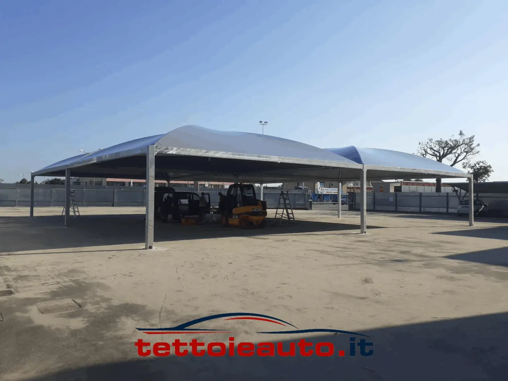 Il nostro gazebo per auto Cicogna MAX pesante è progettato per coprire piazzali esterni di ampia metratura ed è ideale per: