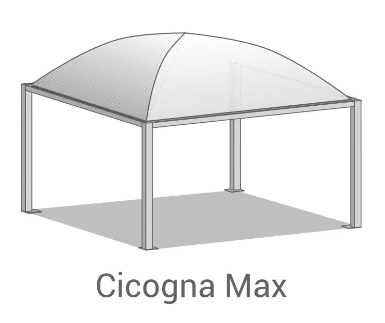 Tra le caratteristiche troviamo un profilo perimetrale avanzato che convoglia l’acqua per mantenere all’asciutto i tuoi veicoli e la possibilità di personalizzazione con grammatura maggiorata e oscurante del telo o con membrana bicolore. Grazie alla robustezza della struttura e alla qualità dei materiali, Cicogna Max Pesante garantisce protezione affidabile nel tempo per qualsiasi veicolo parcheggiato all’aperto.