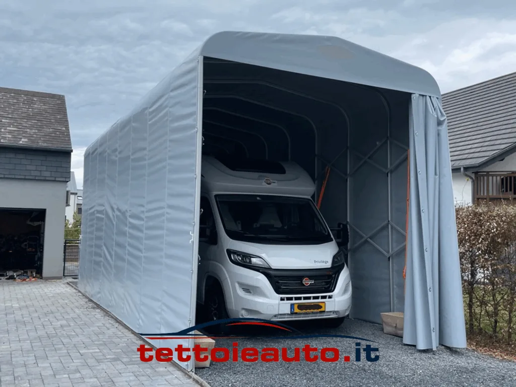 Grazie alla forma a galleria, alla struttura dedicata e al telo tecnico, puoi iniziare fin da subito a proteggere la tua auto in modo efficiente.