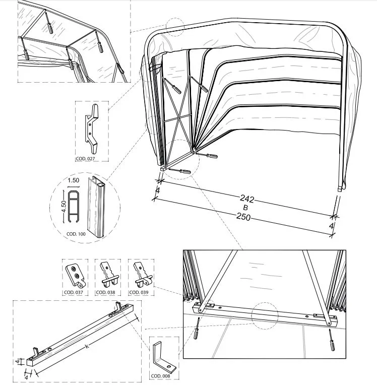 Le caratteristiche tecniche del gazebo a tunnel permettono una bassa manutenzione, bastano pochi accorgimenti, una pulizia periodica per mantenere il prodotto performante per molti anni. Il gazebo a chiocciola che ti proponiamo sono la soluzione perfetta per te che desideri una copertura professionale per veicoli e combina:
