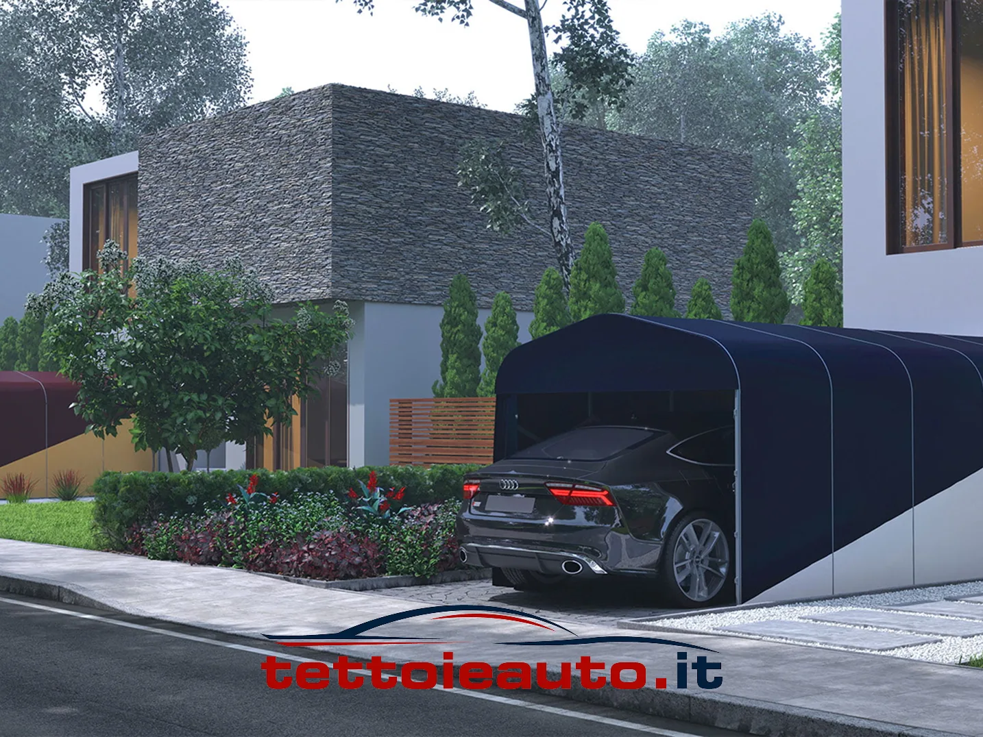 Grazie alla forma a galleria, alla struttura dedicata e al telo tecnico, puoi iniziare fin da subito a proteggere la tua auto in modo efficiente.