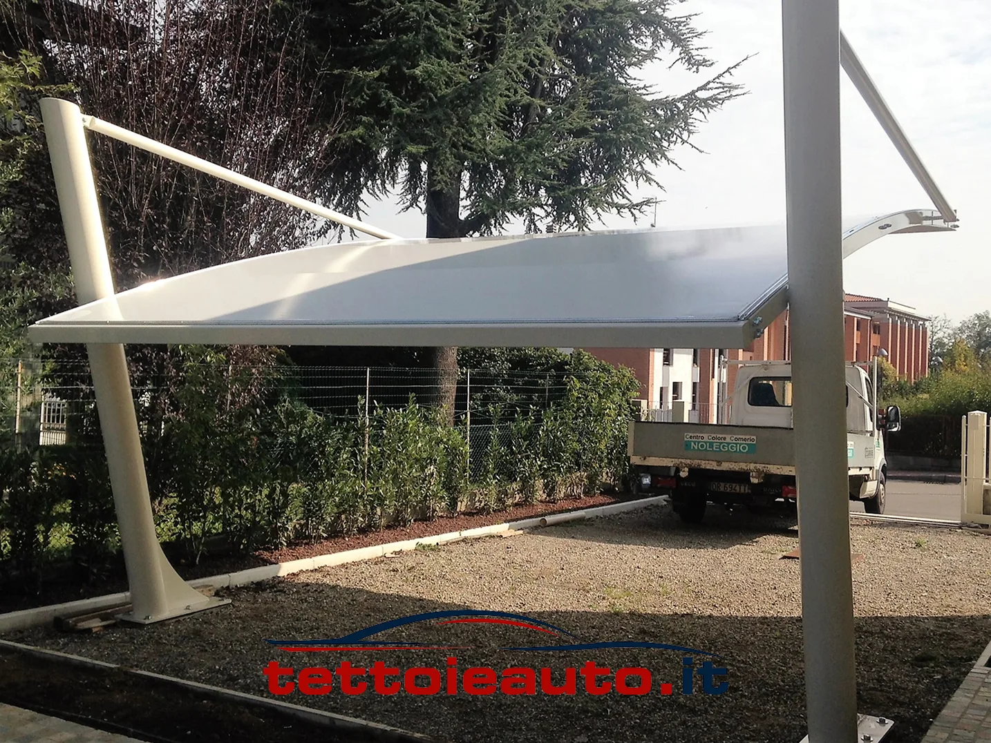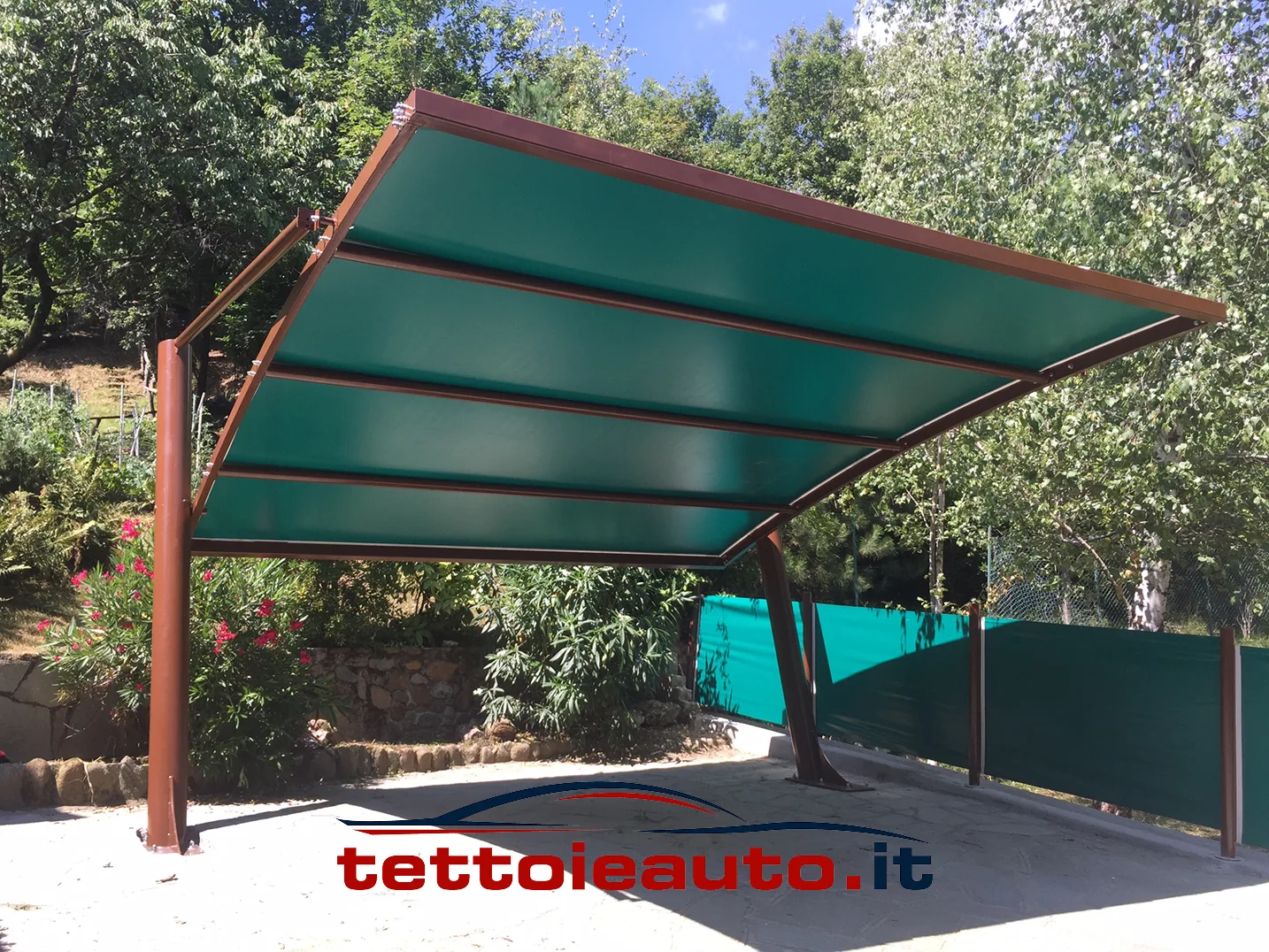 Il tensionamento avviene tramite profilati in alluminio che conferiscono alla copertura per auto un perfetto impatto visivo senza pieghe e un fissaggio che ne preserva la durata nel tempo.