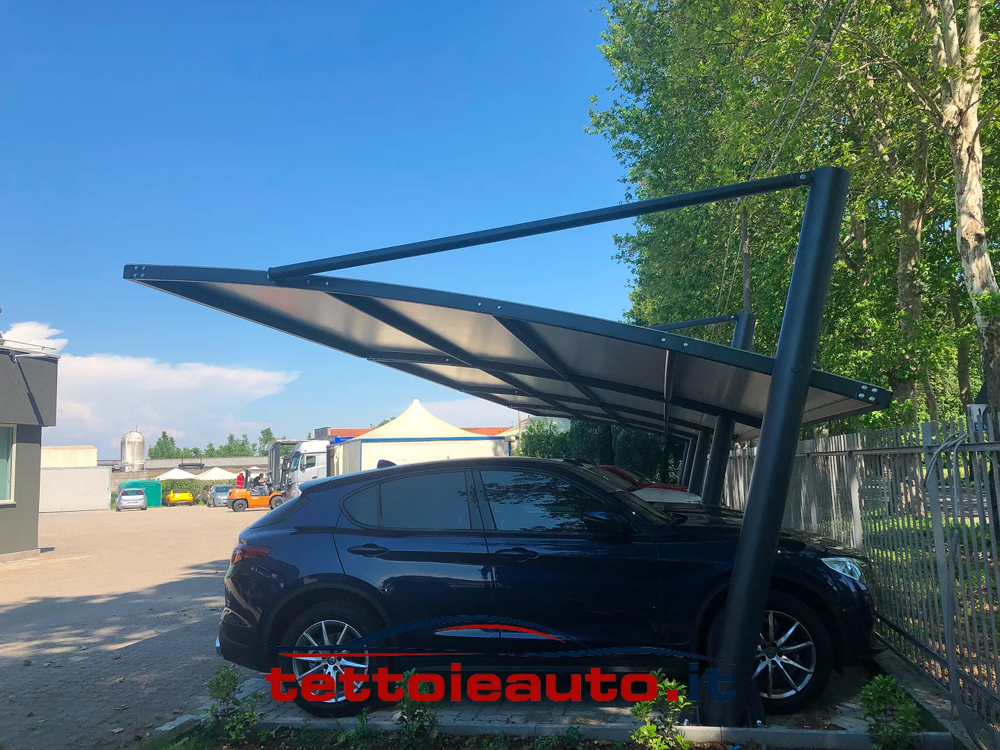 Design moderno non riscontrabile in altri modelli di pensiline per auto
