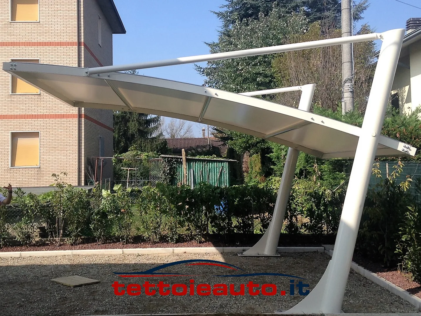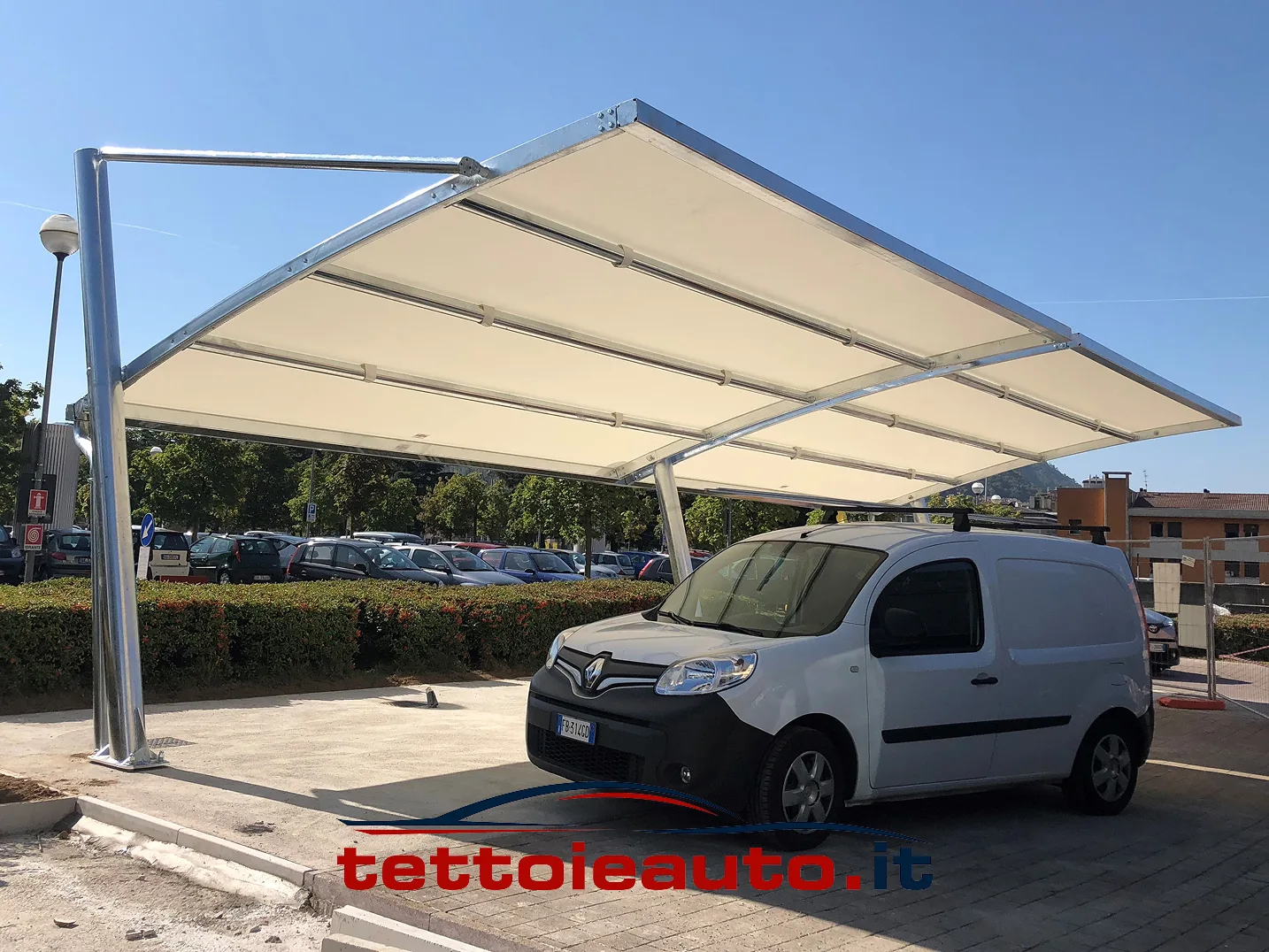 Il tensionamento avviene tramite profilati in alluminio che conferiscono alla copertura per auto un perfetto impatto visivo senza pieghe e un fissaggio che ne preserva la durata nel tempo.