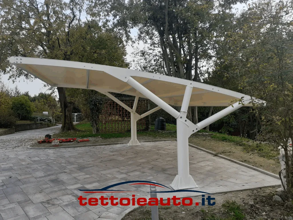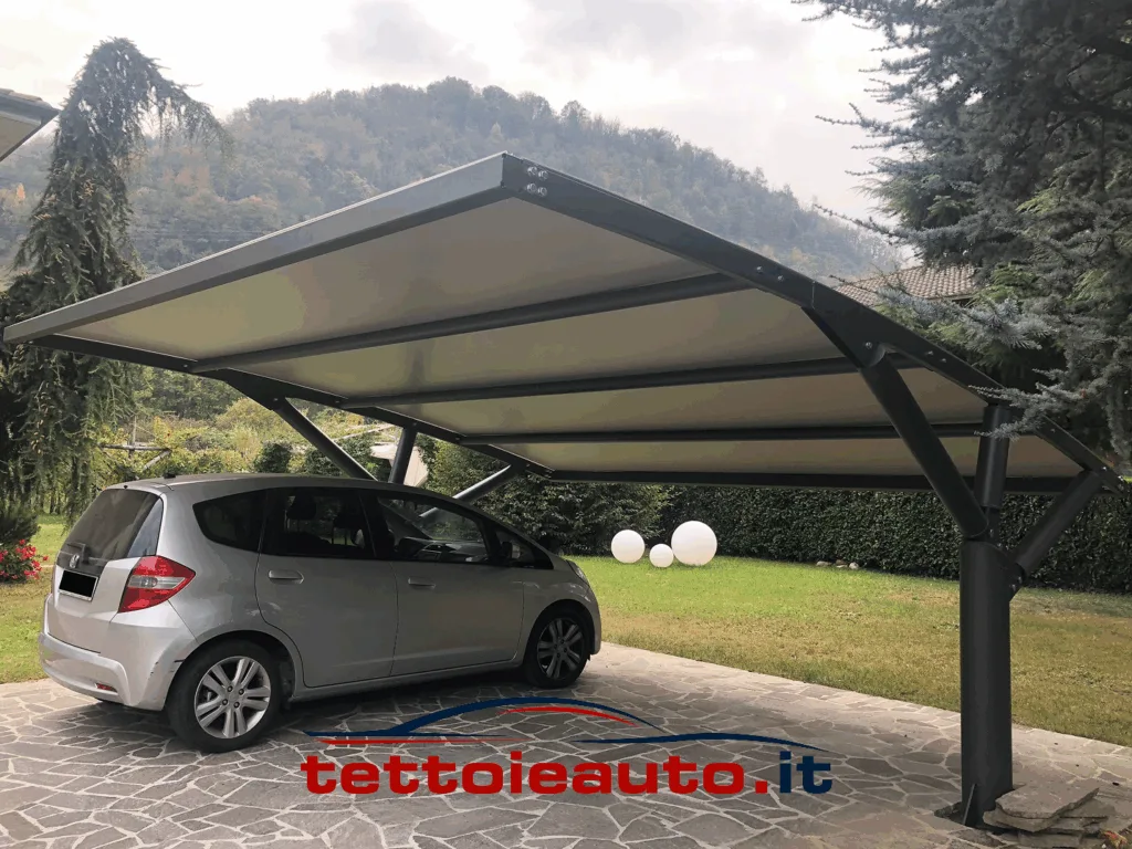 Il tensionamento avviene tramite profilati in alluminio che conferiscono alla tettoia auto un perfetto impatto visivo senza pieghe e un fissaggio che ne preserva la durata nel tempo.