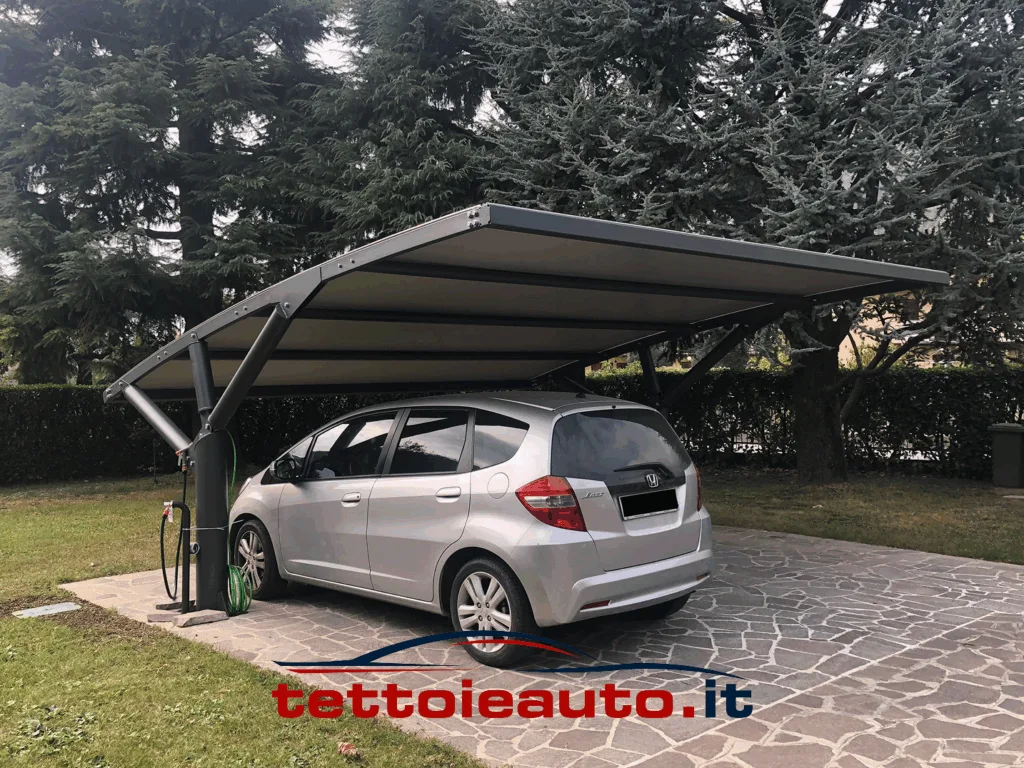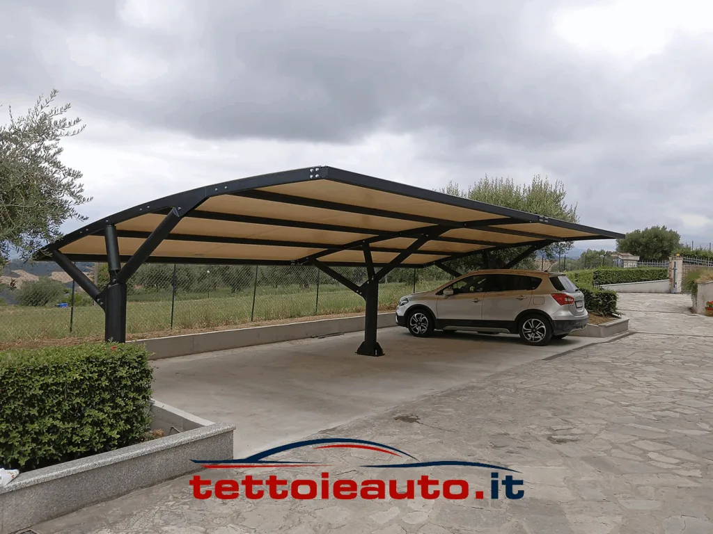Tettoia auto con altezze ribassate e parte superiore altezza massima 2,50 mt, utili in caso di limiti per regolamenti comunali