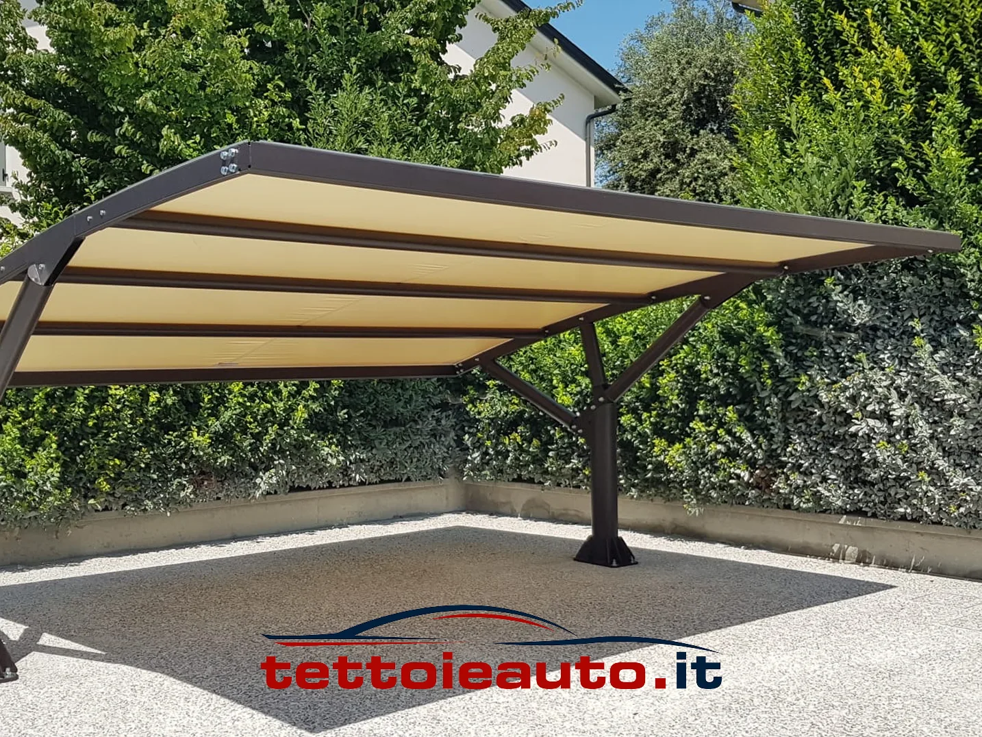 Il tensionamento avviene tramite profilati in alluminio che conferiscono alla tettoia auto un perfetto impatto visivo senza pieghe e un fissaggio che ne preserva la durata nel tempo.