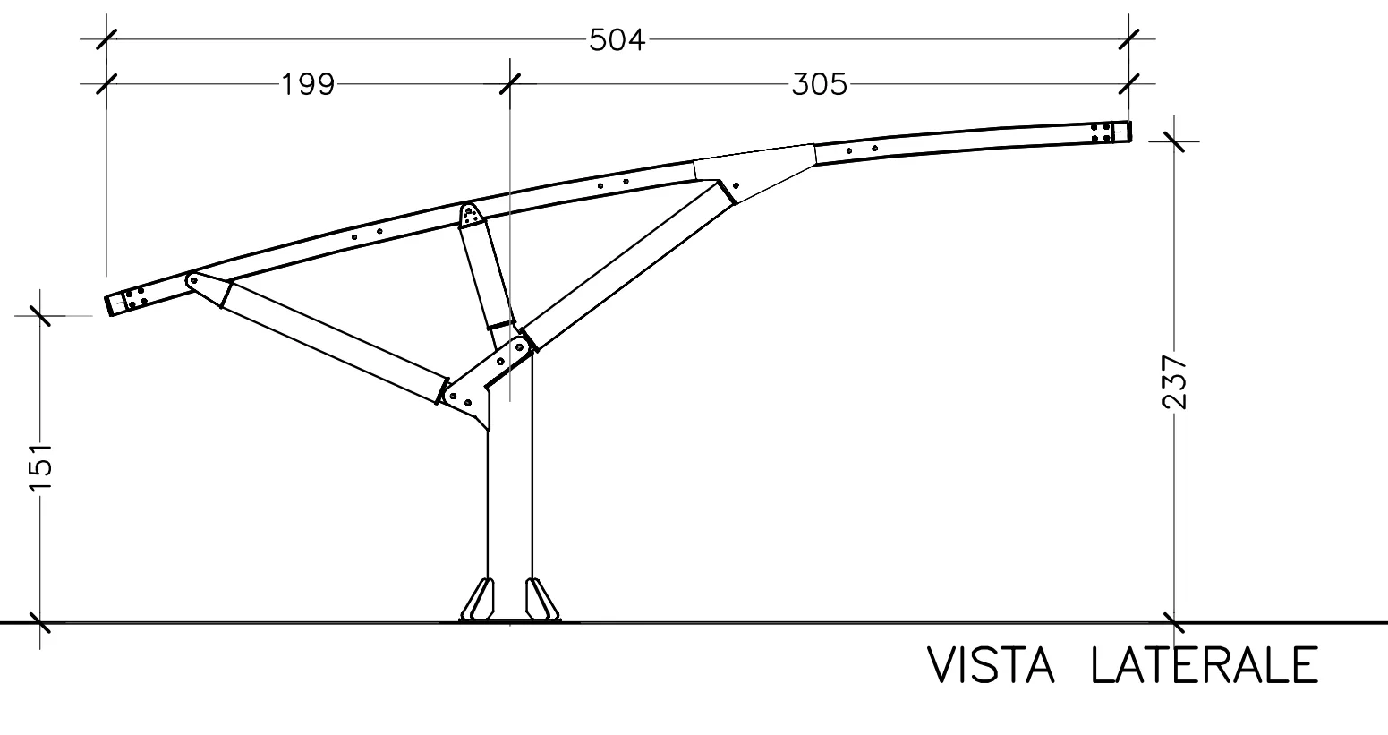 Tettoia auto con altezze ribassate e parte superiore altezza massima 2,50 mt, utili in caso di limiti per regolamenti comunali