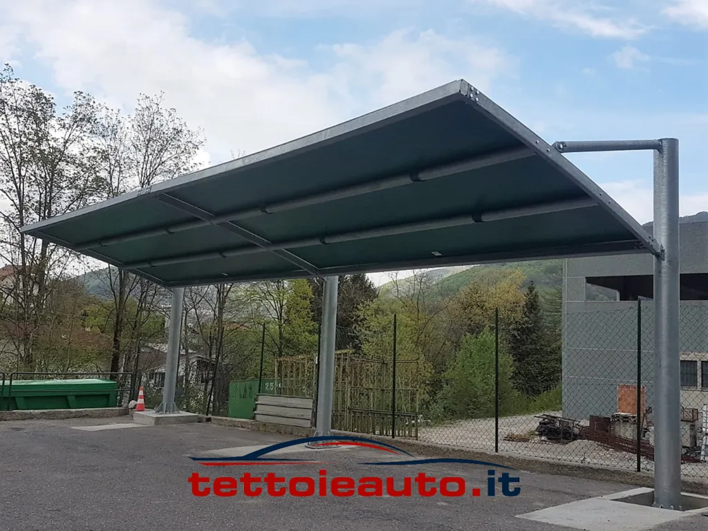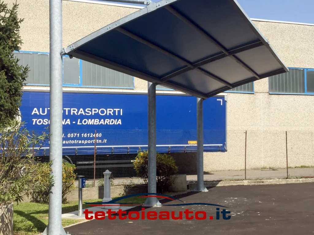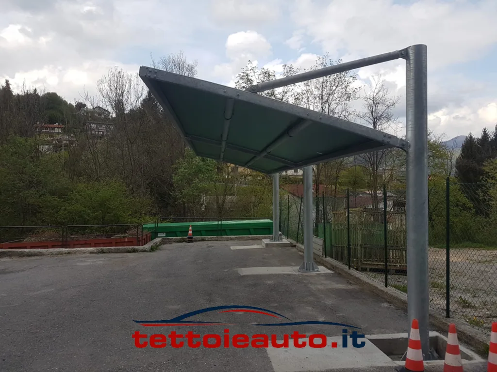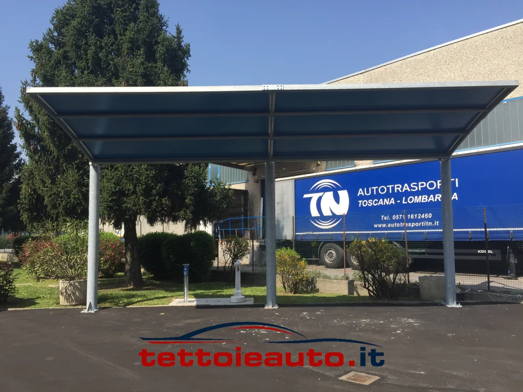 La struttura delle pensiline auto è costituita da carpenteria metallica e manto di copertura in membrana di poliestere spalmata di PVC. Sulla membrana sono state eseguite le verifiche di resistenza in accordo con quanto riportato dal progetto di norma UNI U50.00.299.0.