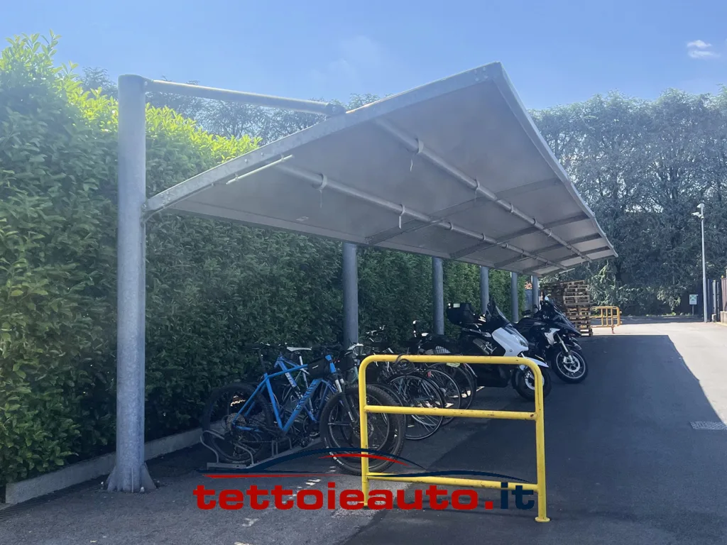 In linea generale sotto una singola tettoia per moto si possono parcheggiare circa 5 mezzi, se l’esigenza e di coprire più cicli e motocicli basta affiancare ulteriori coperture per cicli fino al raggiungimento della propria necessità.