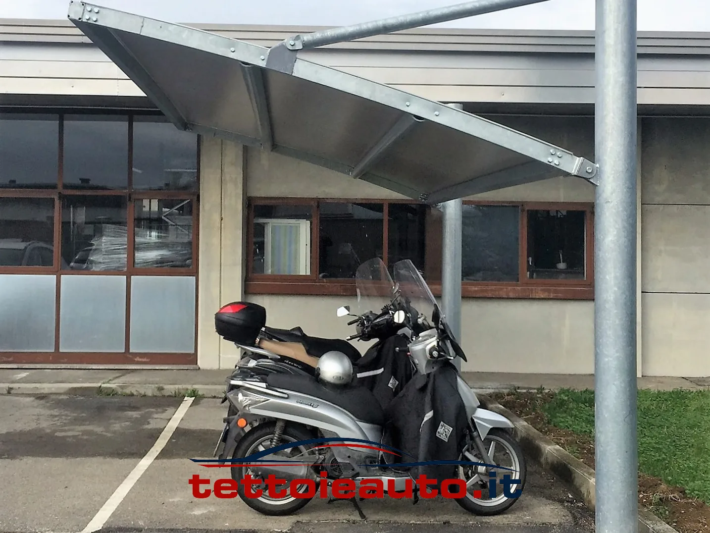 In linea generale sotto una singola tettoia per moto si possono parcheggiare circa 5 mezzi, se l’esigenza e di coprire più cicli e motocicli basta affiancare ulteriori coperture per cicli fino al raggiungimento della propria necessità.